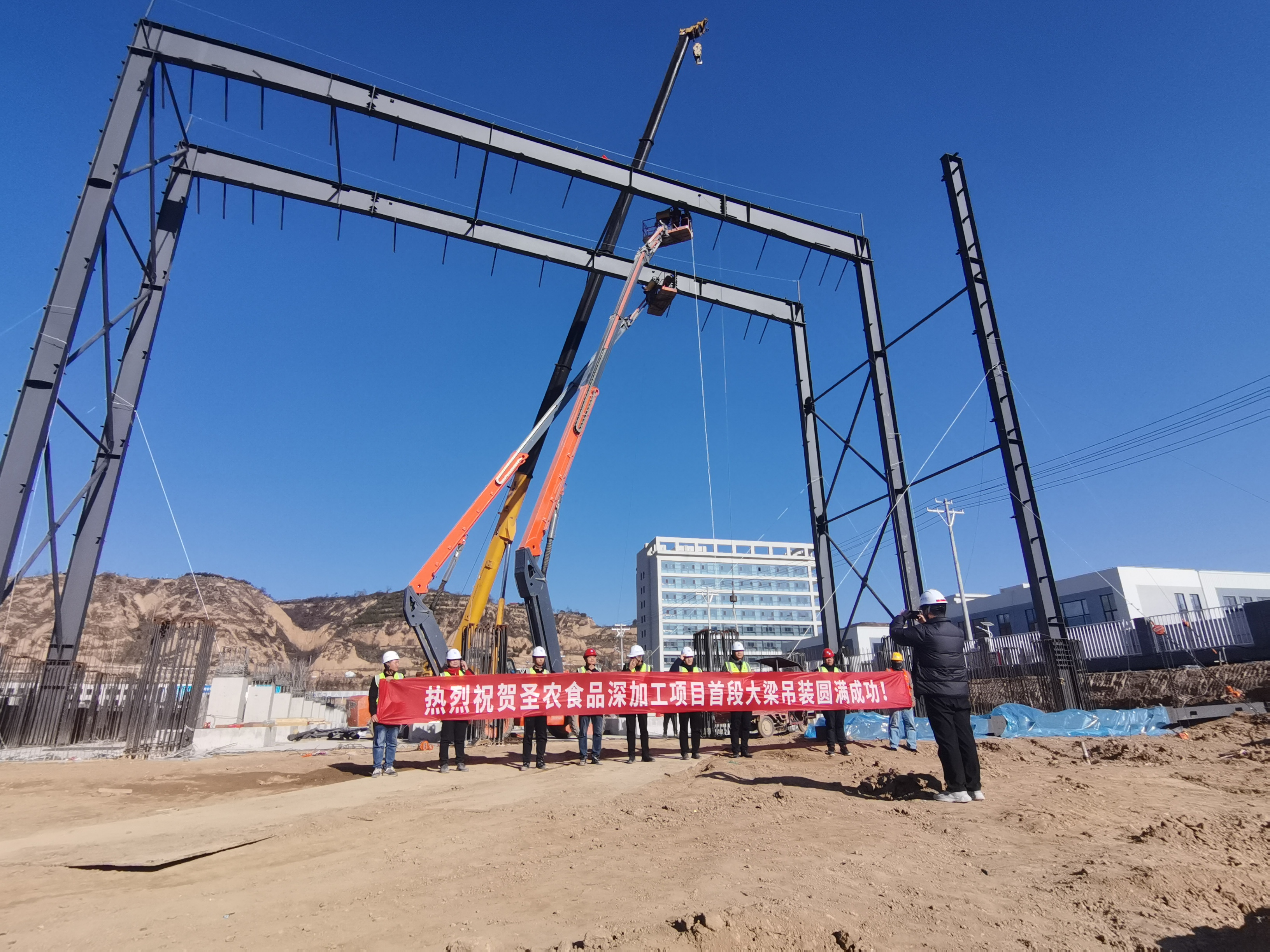圣农食品(甘肃)有限公司食品深加工建设项目首段大梁吊装成功